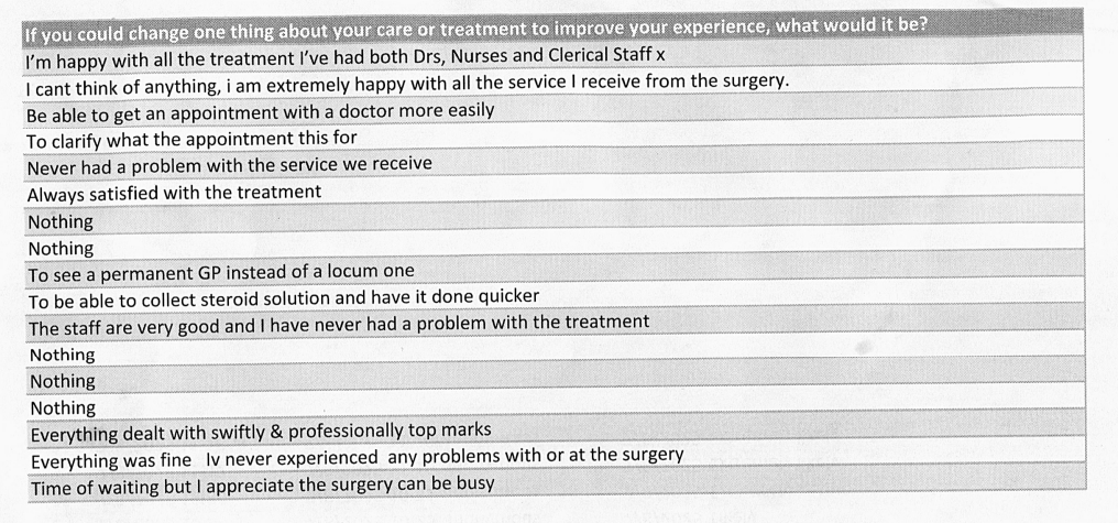 Should you have any suggestions to improve how the Practice operates or manages its services, please complete a Friends and Family Test feedback form.